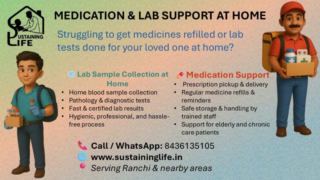 At Sustaining Life, we make managing your health simple and stress-free. With our Medicine Delivery at Home service, arranged at additional through partner providers, you can have your prescribed medications delivered safely and promptly — right to your doorstep.