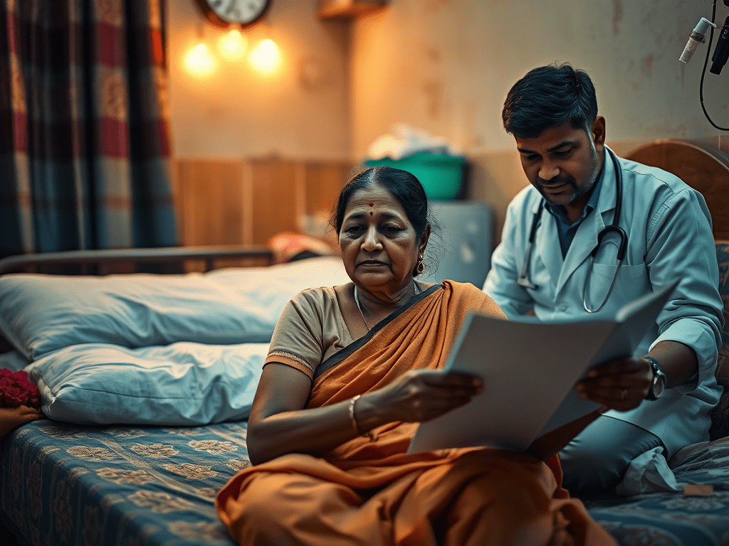 In Ranchi, Mrs. Madhumita and Mr. Ghosh, an elderly couple facing health challenges, receive a visit from their neighbor Rajnath. He reveals a service called Sustaining Life that offers in-home healthcare, including doctor visits and nursing care. This brings them hope for easier health management and peace of mind for their distant children.